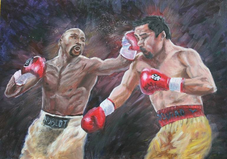 Oil on canvas. The fight took place on May 2, 2015 in Las Vegas at the MGM Grand arena and ended with a unanimous victory for Floyd Mayweather Jr. On this day, I also gave birth to my youngest daughter.