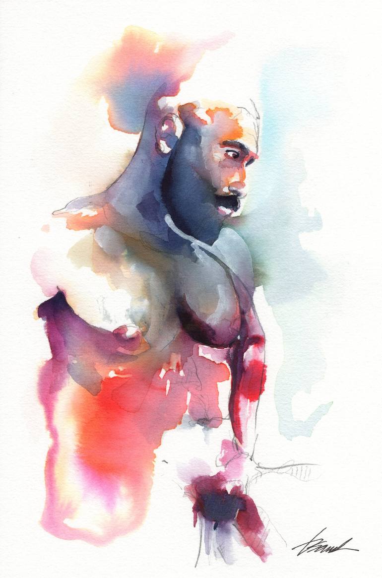 Fort Lauderdale, Florida watercolorist and oil painter, Brenden Sanborn has been capturing the sensuality and beauty of the male figure for two decades. Male nude painting for Brenden is more than just placing the lines or shapes; it's a spiritual journey into expressing a much deeper realm of male sensitivity, passion, tenderness, and vulnerability. Nude male art to Brenden embodies strength, masculinity, humility, and sensuality. Brenden takes the viewer on an artful journey by capturing the subtle differences in each subject's emotions through their body language: A slight tip of the head, a strong angle of the shoulders, or a strong confident chest. Brenden tells a soul story on the paper or canvas by flirting with expressive color, through the pressure of the pen, or with the depth and width of lines. These subtleties are an accumulation of the emotion that the artist is feeling, as well as a complete reflection of the emotions that he is picking up from his subject, for these insights, come as naturally as his thoughts. Color comes instinctively with each painting, too, therefore Brenden varies his palette. He sees the color of his subjects like he sees a beautiful sunset; each painting is different and the emotion conveyed through color is completely intuitive. The painting is always an evolution of a spiritual journey to get to know the deeper, soulful man behind the alluring, erotic body.