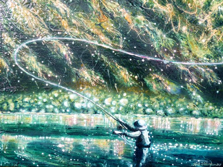 Fly-Fishing #2 is part of a series of smaller works that I am working on. I usually work on a much larger scale. This series feels right to be at a smaller size. I want to capture the wildness of these fly-fished rivers of New Zealand. * This painting has multilayers of acrylic paint on canvas ma...