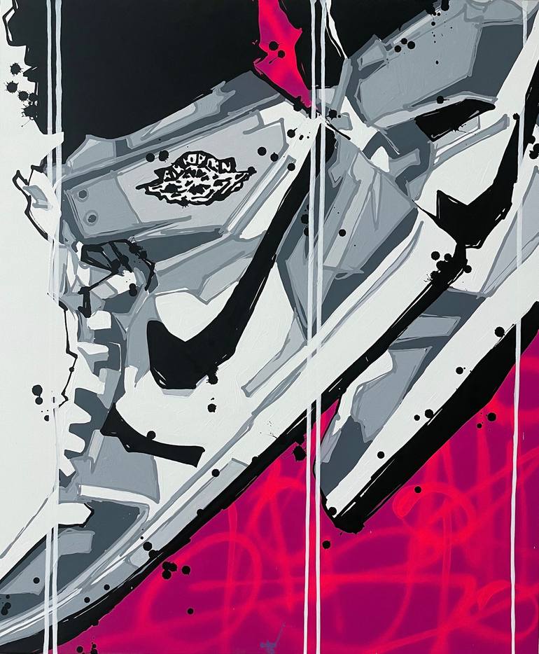 The artworks in this Limited Edition Series are visually striking and capture the iconic design of the Air Jordan 1 shoes in a bold and energetic way. The use of acrylic and spray paint adds depth and texture to the pieces, creating a sense of movement and dynamism that reflects the athleticism and ...