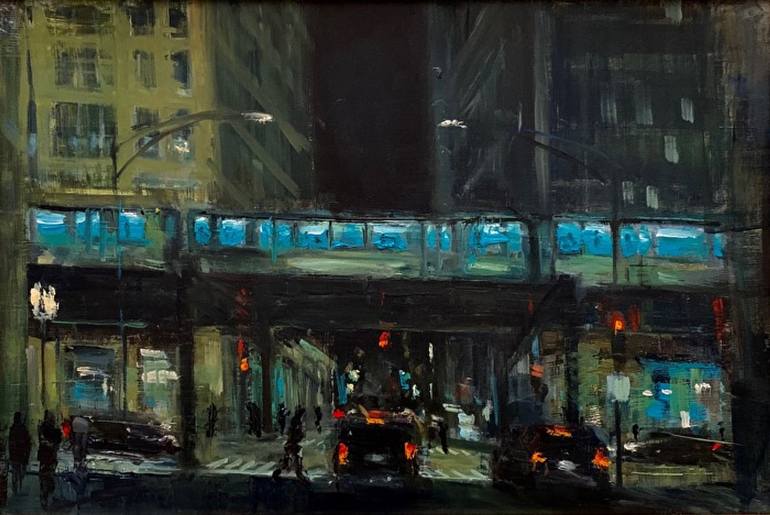 Original oil painting on panel, one of a kind, unframed. I am a painter of urban and city life and am interested in capturing the energy and movement of this environment.