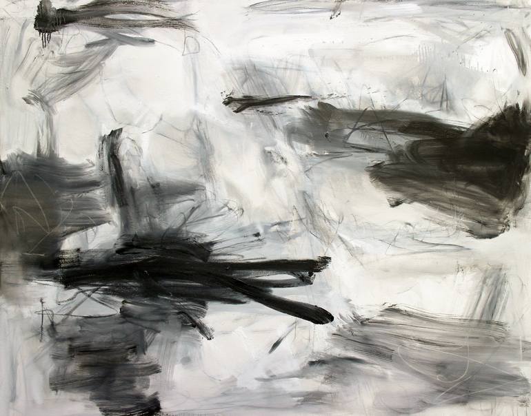 Rush Hour is painted with only black and white oil paint with graphite, although many different black were employed! It makes a striking statement! The 1.5" edges are painted white for a crisp look, making further framing after re-stretching optional. Due to the size, it will be sent carefully r...