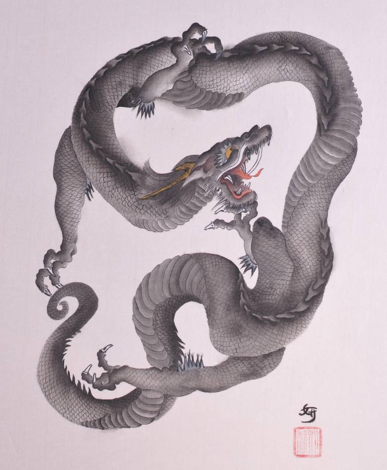 this art work was painting on the year of dragon, I painted as a zodiac protecter. As the artwork of my zodiac series was painted in traditional Chinese mineral colours, so I choosen some of my dragon artworks painted in black and white.