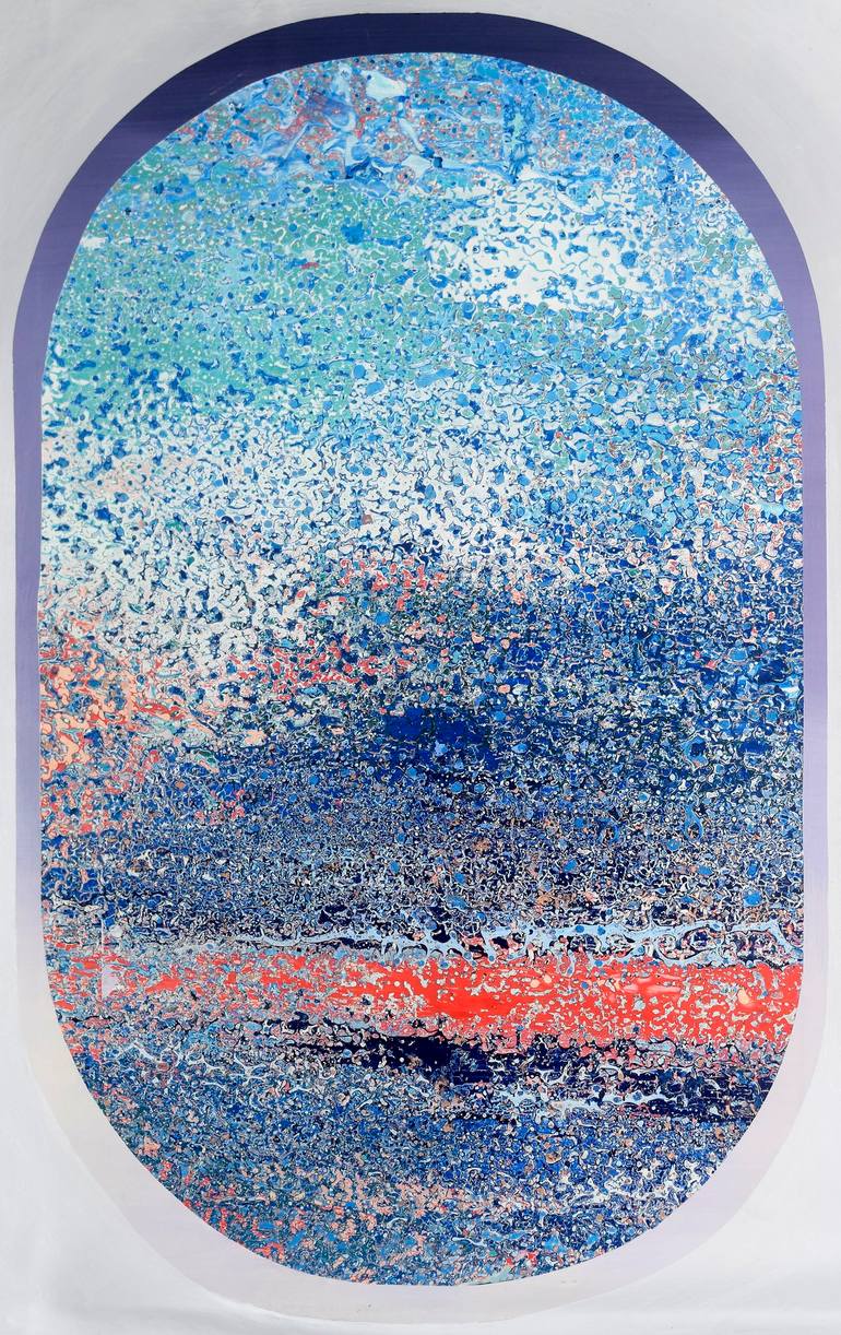 painted in 2020, retouched and finished in 2024. In this work, the outer rim of the picture is a simplified pattern, arranged regularly. When these two conflicting images like pattern and abstraction are placed in one image, It could be reminded the contrast of the regular passage of time or intent...