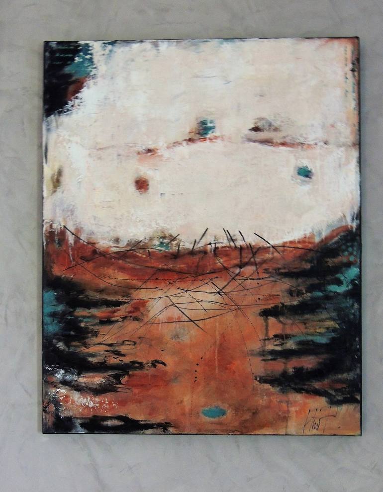 For"Focal Point II" , to the acryl paint I have added special resin for more structure and effects. A text was added by stencil.Anti-UV satin varnish for protection was applied to the finished and dried work. My inspiration comes from nature and specifically water and wind movement. It comes read...
