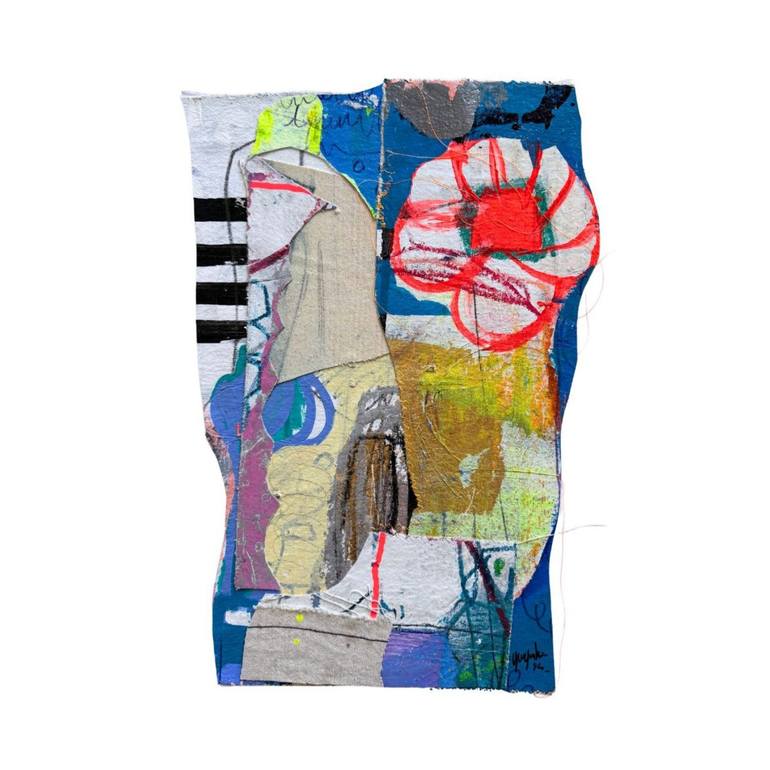 Isabelle Gougenheim was born in Saint-Dié-des-Vosges, the town where the name America first appeared on a map. Surrounded by symbols, geography, and reused materials, she developed an early interest in storytelling through form and texture. These roots continue to shape her artistic practice. After earning a Master’s in Fine Art and Ethnology in Strasbourg, she spent six months living with Berber tribes in Morocco. Immersed in their culture, she discovered a new visual language and deepened her connection to craft and material. Now based in Chicago, Isabelle blends painting, sewing, and collage to create vibrant, layered works. She works mainly on unprimed canvas, combining bold colors, found objects, and tactile elements. Her pieces reflect the rhythm of daily life, shaped by urban noise and moments of introspection. Through texture, color, and movement, each work invites viewers to enter a visual world that is personal and poetic. Isabelle is recognized as one of today's finest emerging artists by publishers such as Saatchi Art and AFA Publishing. She has held recent solo exhibitions in Colmar, France, as well as in Chicago. She is represented by galleries across Europe and the US.