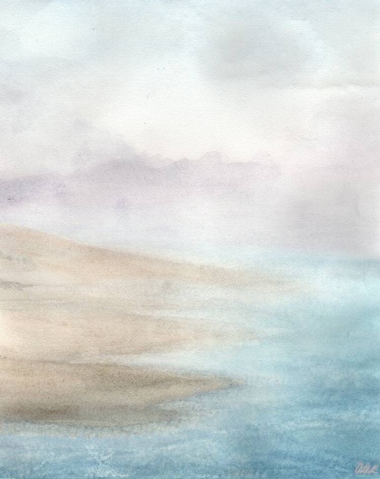 Using the talent and brushes that I inherited from my grandmother, Miyako Koinuma, I create landscapes, seascapes, and skyscapes (I may have made that word up). I love to explore how the fluidity and freedom of watercolor mimics the organic mixture of hidden lights and colors in nature.