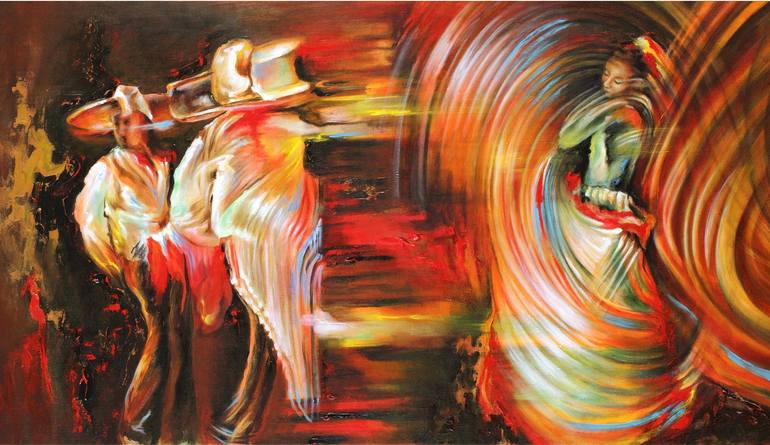 ORIGINAL SOLD Contemporary acrylic paintings of a folklore dancers in movement. This figurative paintings represents energy through human motion.
