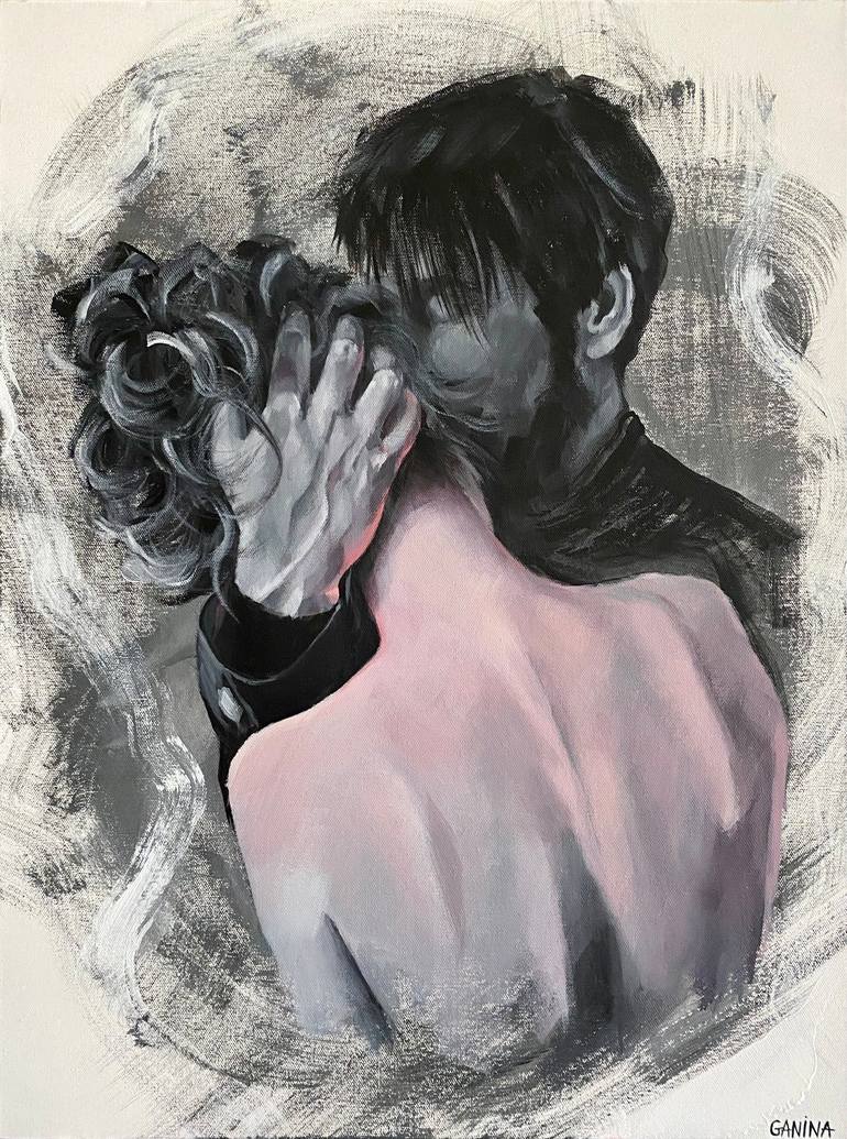 This evocative original artwork captures the essence of passion and desire in a romantic embrace. Set against a monochrome black and white background, the figures of the embracing couple glow with intensity and warmth, drawing the viewer in and inviting them to experience the moment of connection. ...