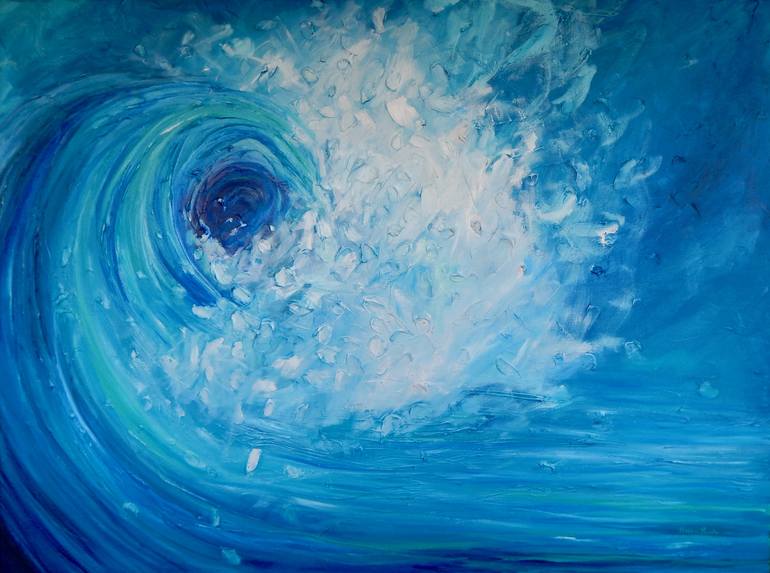 I’ve always been passionate about water. I began swimming before I could walk and have been a fish ever since. Walking out to the ocean is a magnificent getaway. The ocean’s immensity instantly centers me. It was only a matter of time before the sea found its way to my canvas. Canvases in my “Ocean”...