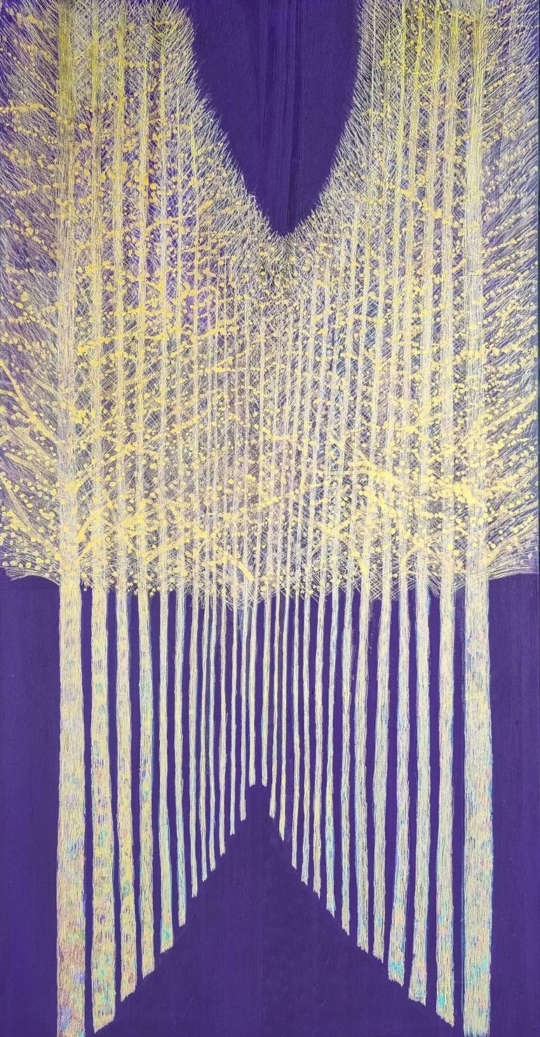 The Tree represents life, regeneration and finitude. Woods and forests are places of sacred healing, where shamans seek their herbs and converse with spirits. My support is the wood that carries within it every record of a tree´s life. On top of it I build a section of the forest. The metallic color...