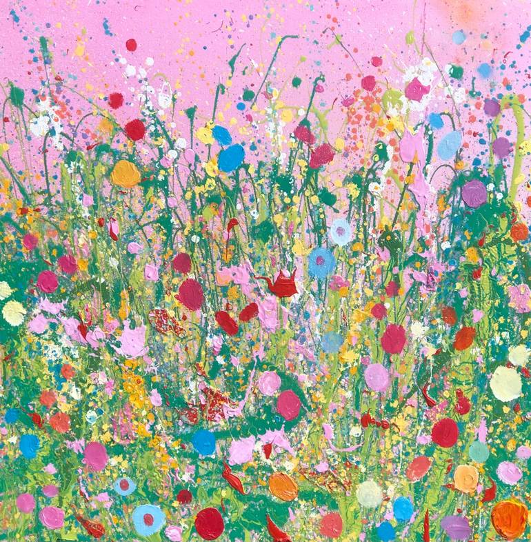 I trained in Sussex, England and have been working as a full-time professional painter since 2002. My contemporary paintings are held in private and public collections worldwide. The paintings are created using a multitude of layers and are deeply connected to nature. I work exclusively with oil paints and I believe my work communicates all that is good in the world. My rainbow drenched paintings sing of wild tumbling hedgerows, tangled meadowlands, open moorlands and magical forests. They whisper of love. My intention is to transport the viewer to an effervescent place of happiness that is literally saturated in joy. A place where paint smiles. The materials I use are extremely important. A mixture of oils, inks, glosses, glazes, fine glitter and gold leaf are applied in a multitude of layers. Washes are built up to form a work that is infused with colour. Paintbrushes, sponges, rags, palette knives and fingers are all used to create the finished piece. The result is a kaleidoscopic jewel like composition of rich pigments that prismatically opens up to reveal the radiance and beauty of nature. I always works outside, so lacy ice and howling gales have as much influence on the final painting as scorching sunshine and gentle breezes. The weather in a very direct way dictates how and where the paint falls. The creation of the piece is a very physical demanding process that requires my all. The initial marks evolve from an energetic dance around the canvas and the process is full of raw emotion and passion. In the early stages of an image I throw, rub, dribble and pour rich stains onto linen responding to internal and external landscapes as they unfold themselves. However, in the final piece there is also a quiet calm and peacefulness present in each image. A place for the soul to rest. A place for dreams to unfold. Spontaneous and instinctively my paintings demand risk, courage and a weaving of magic out of what emerges. Surrendering to the canvas I touch the place where mystery lies. I was brought up on a farm and spent much of her childhood in Ireland, my mother’s homeland. Inspired by the world and all it contained, I travelled widely in my twenties with a thirst for exploration and discovery. During this period I spent time living and working in Australia, Africa and Europe. One of my most formative journeys was spent with a horse-drawn community in England, discovering ancient, sacred and forgotten parts of our land.