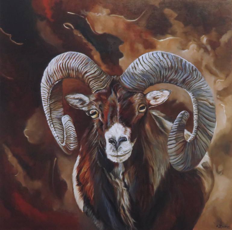 A mouflon in the fog that evokes a situation of surprise and mystery. Hence the title of the painting "Foul play" which recalls the novels of John Le Carré. An unforeseen situation that confuses everyone! Anne Zamo seeks to share the beauty and daily wonders surrounding us and that we do not always...
