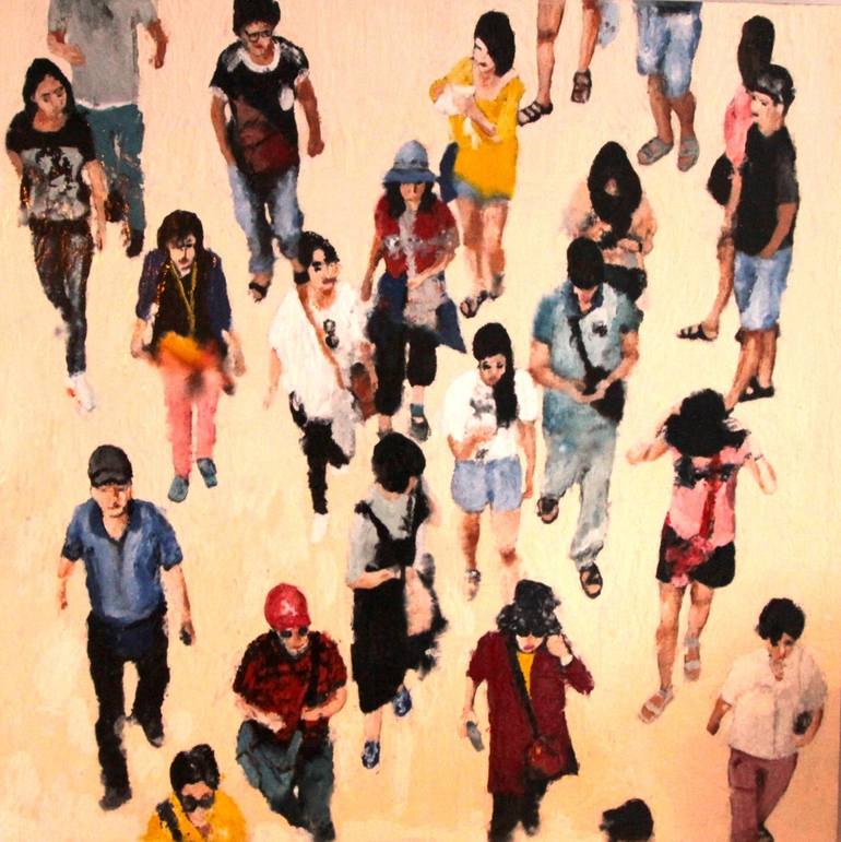 Hervé Carriou born in Brittany has been painting for twenty years. He lives in Paris. In his early years, he studied watercolor and the technique of old-fashioned oil painting. He now paints mainly in encaustic for about 10 years and more recently in ink and acrylic on plexiglas. His favorite themes are: the crowd, urban landscapes, street scenes, seascapes, portraits. The encaustic is a technique dating back to ancient Egypt (Fayum portraits from the 1st to the 5th century) and consisting of using the beeswax heated, mixed with pigments. This medium thanks to the amber finish and the transparency of the wax allows fuzzy and fade effects. Inverted glass painting (or painting under glass) is an artistic technique that runs directly on a sheet of glass or plexiglass. The glass or plexiglass supports the painting as would a canvas. Welded to the glass, it is through this support that one contemplates the work. Thus glass or plexiglass serves as both a support and a protective varnish. Note that this is a "cold" painting technique so that the process does not require baking. The work is executed on the back of the support and requires to compose with a "mirror effect" during the execution of the image since what is painted upside down on the right is in the place on the left.