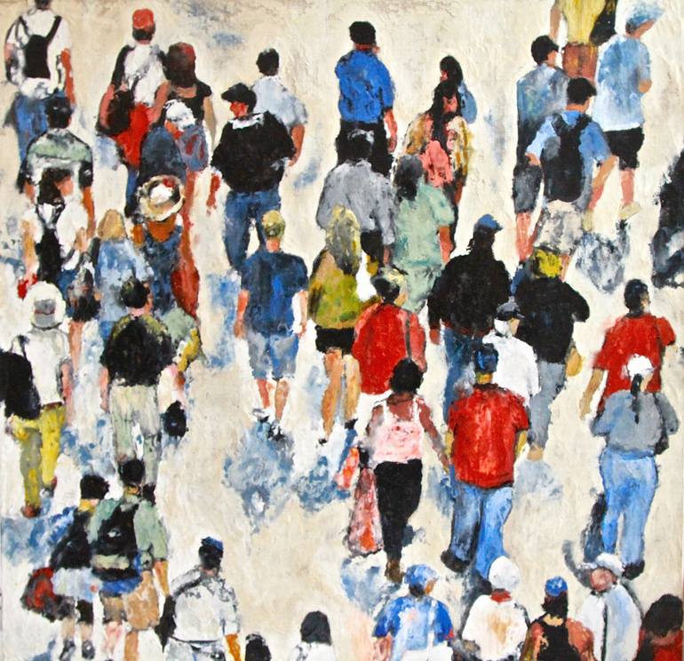 Hervé Carriou born in Brittany has been painting for twenty years. He lives in Paris. In his early years, he studied watercolor and the technique of old-fashioned oil painting. He now paints mainly in encaustic for about 10 years and more recently in ink and acrylic on plexiglas. His favorite themes are: the crowd, urban landscapes, street scenes, seascapes, portraits. The encaustic is a technique dating back to ancient Egypt (Fayum portraits from the 1st to the 5th century) and consisting of using the beeswax heated, mixed with pigments. This medium thanks to the amber finish and the transparency of the wax allows fuzzy and fade effects. Inverted glass painting (or painting under glass) is an artistic technique that runs directly on a sheet of glass or plexiglass. The glass or plexiglass supports the painting as would a canvas. Welded to the glass, it is through this support that one contemplates the work. Thus glass or plexiglass serves as both a support and a protective varnish. Note that this is a "cold" painting technique so that the process does not require baking. The work is executed on the back of the support and requires to compose with a "mirror effect" during the execution of the image since what is painted upside down on the right is in the place on the left.