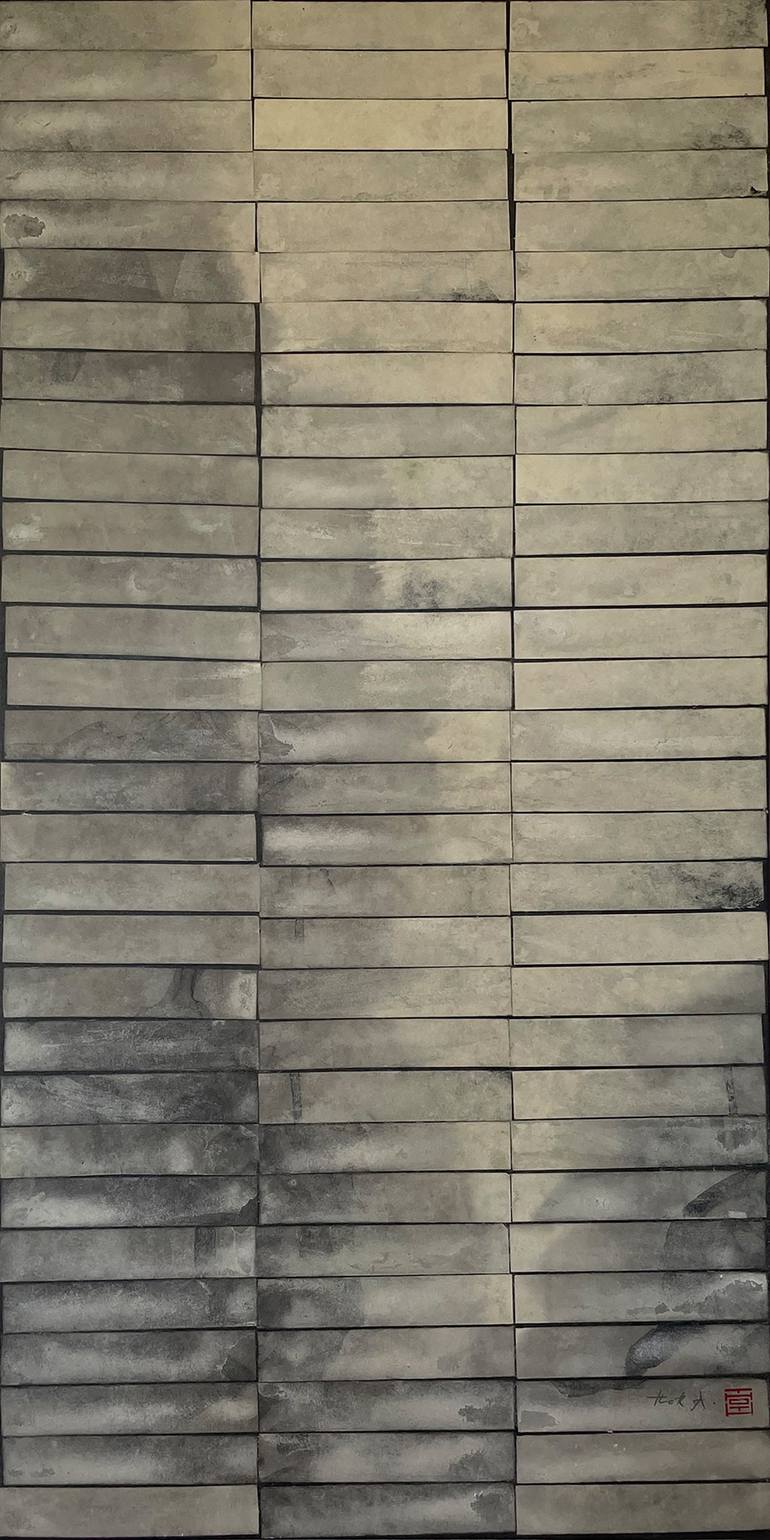 The Fragmentation paintings are based on discarded Washi papers. Reassembled and rearranged, Thoth draws inspiration from Japanese Boro techniques to create new compositions, embracing the beauty of imperfection and the philosophy of Wabi-Sabi. This piece was created using Sumi ink, Nikawa and min...
