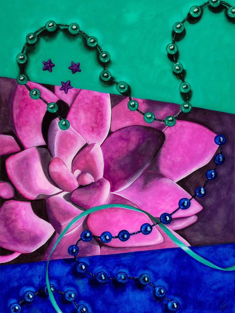 Ciara Froning is a graphic designer by day and a visual artist by night. She holds a Bachelor of Fine Arts degree in Studio Art from the University of Central Arkansas and currently resides in Rogers, AR. Primarily using gouache and watercolor, Ciara enjoys exploring themes of pop-culture, beauty found in ordinary objects, and the intricacies of the human psyche. She also experiments frequently with alternative printmaking techniques and mixed media. Her work has been exhibited nationally, including Manifest Gallery, ShockBoxx, Gallery 1988, and more. She has also been featured in multiple publications, including The Hand Magazine and Booooooom, to name a few. Artist Statement: There’s a constant pull between control and chaos. As a neurodivergent mother, I feel it intensely as I strive to simply meet the demands of daily life. In an effort to abandon negative coping patterns, I now find my peace through the process of painting and experimental printmaking. My recent work reflects my personal challenge to channel my inner chaos as I seek out the serene.
