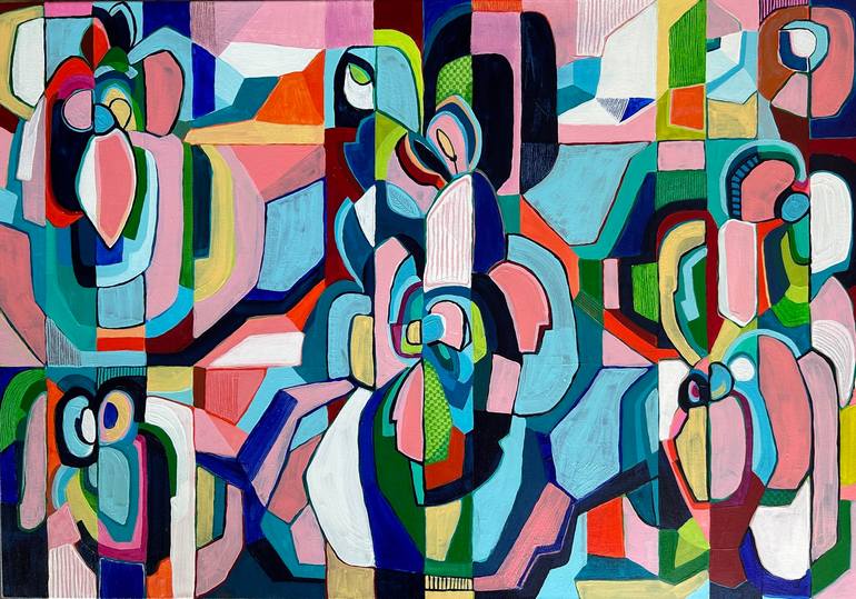 Samantha Malone is an Australian/Israeli artist based in Tel Aviv. Her work is about movement, balance, and the way shapes and color interact on the canvas. She is interested in creating compositions that feel rhythmic and alive, where structure exists but doesn’t feel rigid. Geometry often sits at the base of the work, softened by intuitive marks and a more fluid process. She works with acrylic paint and mixed media, building layers of color, line, and pattern. Shapes are adjusted, broken apart, and reworked, with sometimes parts of the surface scraped back to reveal what came before. This layering adds depth and keeps the work open and dynamic. Color is central to her art practice. She use contrast and repetition to create a sense of flow, inviting the eye to move across the surface and linger. The paintings are abstract, but they aim to feel playful, considered, and connected, leaving space for the viewer to bring their own meaning to the work. Samantha has exhibited internationally, including participation in the prestigious 2023 London Art Biennale. Her works can be found in private collections across Europe, the UK, the USA, Asia, Canada, Australia, the UAE and Israel.