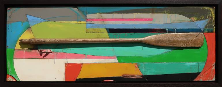 Rey’s signature series is inspired by his life’s journey. The wooden oar, found at sea, represents the experiences of migrants and immigrants who leave their homelands in search of a better future.