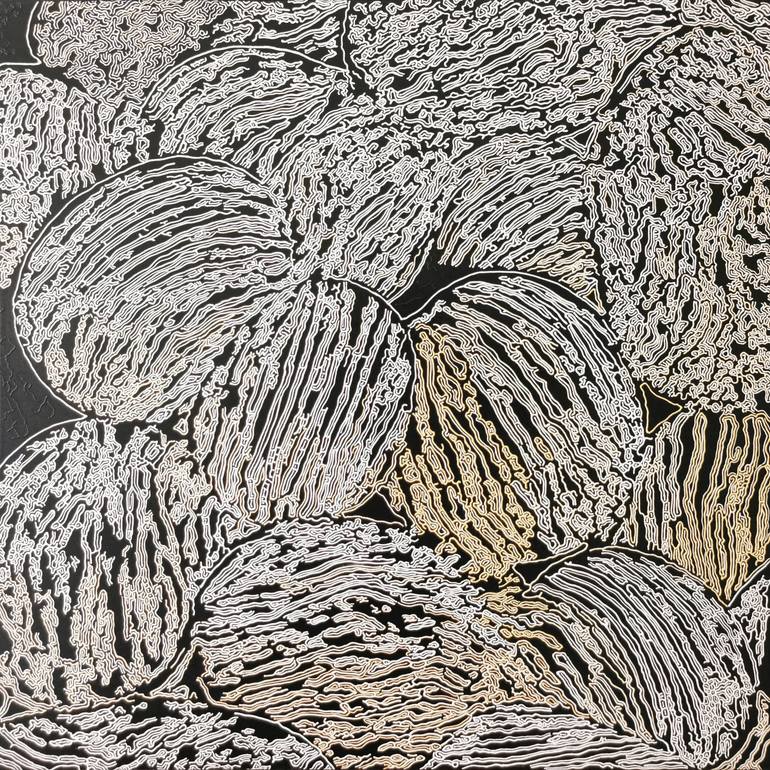 When nature meets the abstract, we have an endless field of artistic exploration. This is an original painting due to a particular technique, the color is not applied with brushes, but with bottles filled with acrylic paint. Each color was created individually. The painting is signed on the back an...