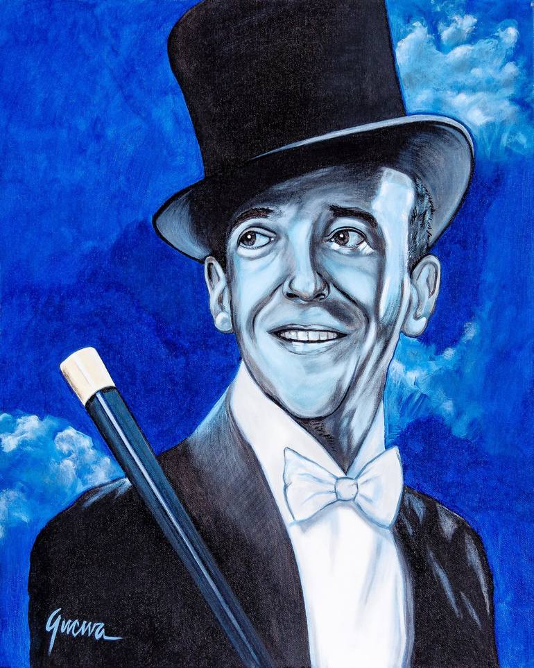 Blue is the predominant color of Kingneon's Fauvist portrait of triple threat 20th Century Hollywood star, Fred Astaire. Famed for his phenomenal dancing techniques, most notably opposite Ginger Rogers, Astaire dons a "Top Hat" (1935) and sets off to dazzle audiences on the silver screen.