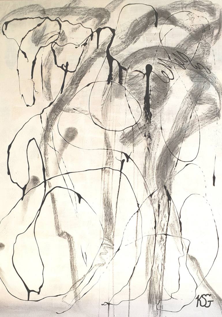 It was time to indulge in free motion of line, form and fun. Using the simplicity and boldness of black and white the piece creates wonder. This is more of an intuitive work yet layered with elements of media materials from graphite, charcoal,Tar Gel, to Acrylic. Each layer is coated with a protect...