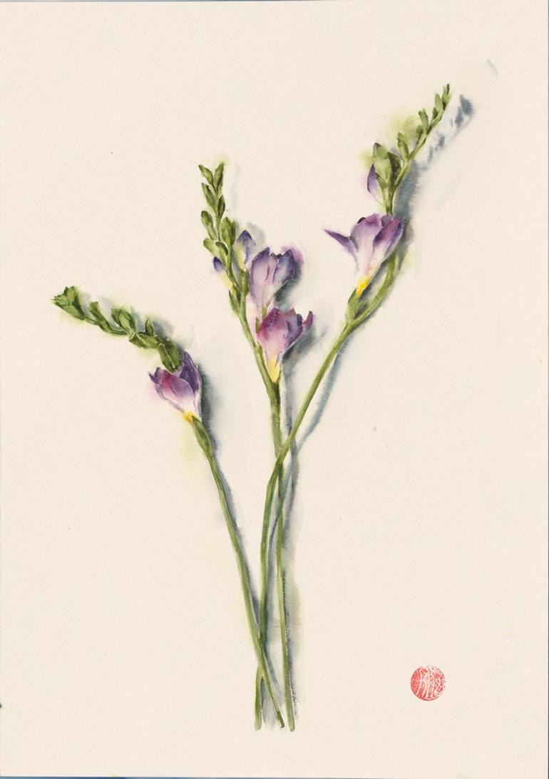My work is inspired by the natural world and expressed through the fluid, unpredictable and sometimes magical effects that take place when watercolour pigments and water mix on paper. My botanical artwork is seasonal as I paint from life as inspirational subjects are found.