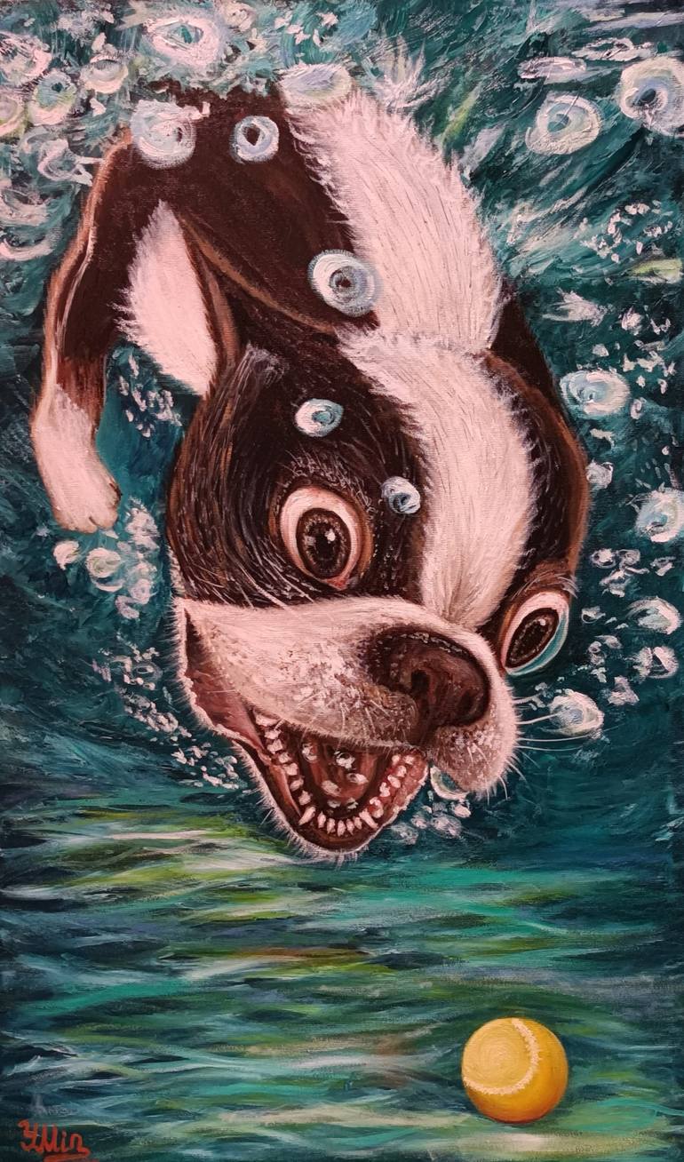 French bulldog dives into the water for a tennis 's always fun to see how our pets look underwater, it's so funny and unusual. For a long time I wanted to write such a funny one that would please myself and my clients. Let this picture give you moments of joy and positive, just like me during the ti...