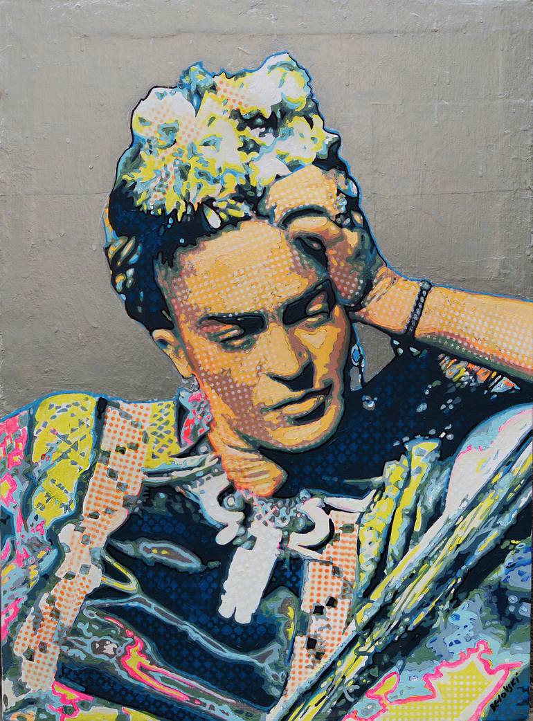 A Frida Kahlo portrait with acryl on canvas. Part from a series of 10 portraits