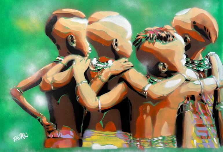 Africa and its people always get my attention. I try to represent ancient tribes with new materials, such as spray paint to get the contrast and bridges between the primitive and the contemporary. I love to paint children from different tribes from Africa.