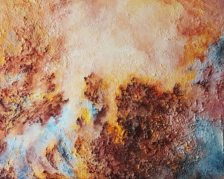 Rougan's ART - Connecting with the world and with all the univers ! The formation of the oceans, the origin of water on Earth, sedimentation, fire, magma, formation of coal, of planets, accretion, geological phenomenon ... I mix organic, mineral, the elements and various displays of these elements. My work tends to connect the world to beings and things, to form a whole, an entirety. About my work: "What seems like chance or serendipity actually reflects years of honed skills in measuring, blending, searching to find what responds to my inner sense of how colours, light and dark, compete - tensions release, conflict and resolution - an echo of life - its journey of holding back and letting go - paying attention to the tiniest detail and seeing the broader picture at the same time. Over my varied encounters with art viewers I have found that a work of art doesn't only exist in a vacuum and once it leaves the scrutiny of meeting my original conception it acquires a dimension through "conversation" with the observer and their impressions, questions, reflections. It is the ultimate witness to the fruitfulness of my creative work to see such reactions and to share in their varied interpretations." NOTE: The images in context are not necessarily to scale and are for display purposes only.