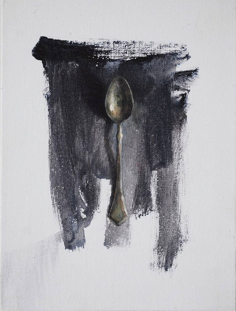 The work of the series "Kitchen Stories" number 5 was written in 2018 in the technique of oil painting. The painting depicts an antique teaspoon. The project idea was to present the objects around us in the kitchen, the objects we use automatically, without thinking, like portraits of things, with t...
