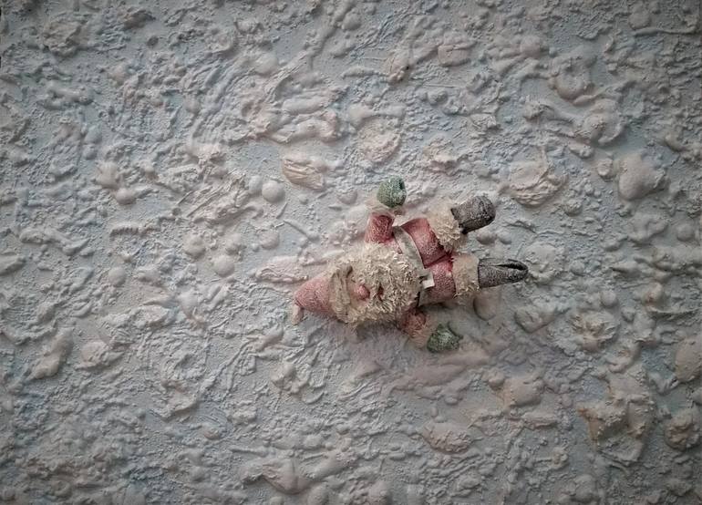 The work was inspired by a stuffed Santa toy that I had, and my neighbor giving me two buckets of substances mixed together usually to make fake rocks that expand and become a solid bondo-like finish.