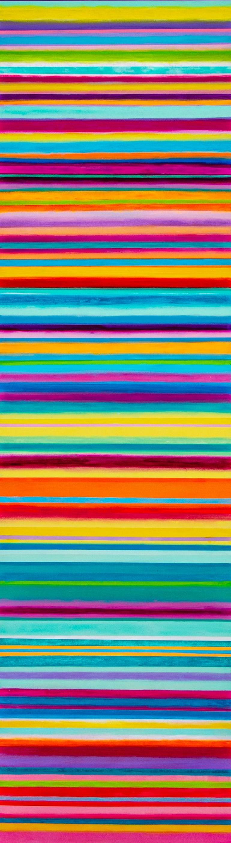 Fruit Stripes is a very versatile piece of artwork. It can hang horizontally or vertically or even slanted! Given that it is almost 80 inches long (or tall), it makes a real statement. This one will be noticed no matter where it is hung. Although painting varied stripes is tedious work (physical as ...