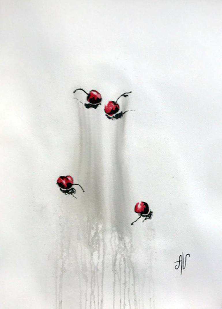 Fruits series: cherry a modern painting made in mixed media style (watercolor, ink on paper). Original painting exists only in one copy, as an artist would like to keep all the artworks unique and in one copy. The purpose of this artwork is to attract attention to unusual beauty of nature. All mat...