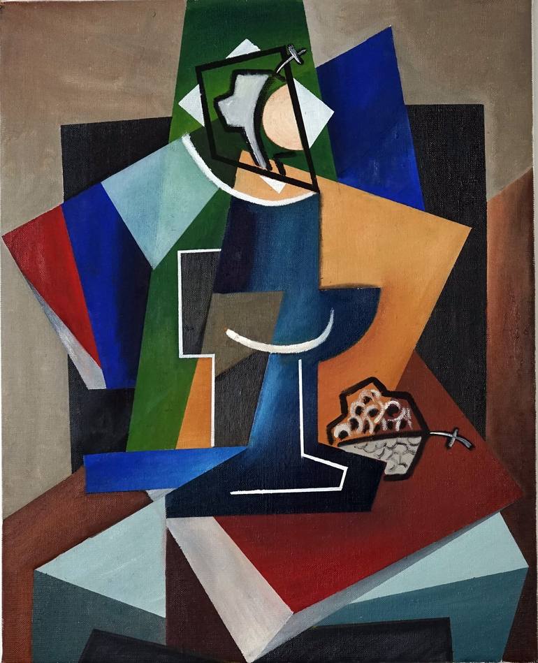 representación de un recipiente con uva. la composición y composición en el estilo cubismo