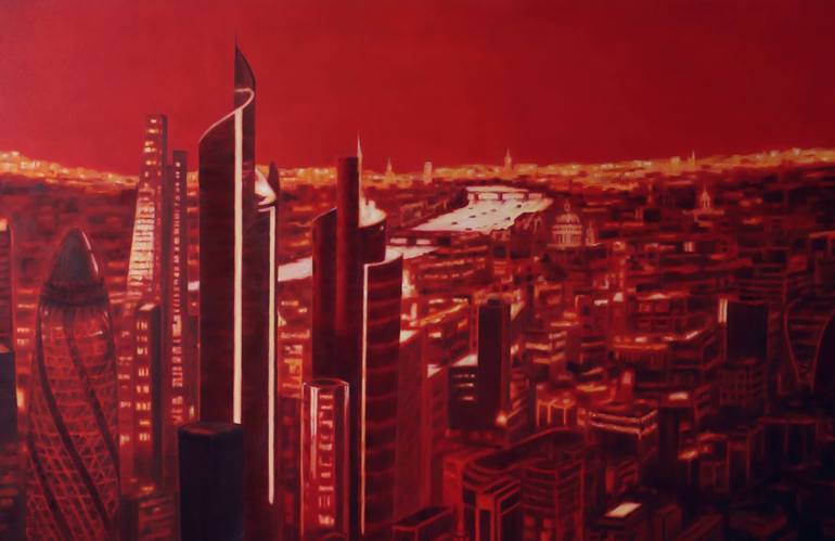 Description: 3rd piece in my new series, all about how london skyline will look like in near future, with the addition of skyscrapers such as Pinnacle, Walkie Talkie, Cheese Greater.Medium: Oil on CanvasYear Created: 2009