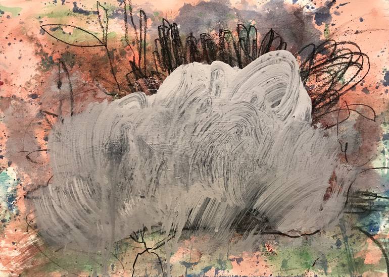 This painting is watercolor, gouche, charcoal, and acrylic on watercolor paper. The size is 9"H x 12"W, it is signed on the bottom right side. A main theme of all my work is the relationship between the environment, humans and animals. My compositions draw inspiration from the idea that everything ...