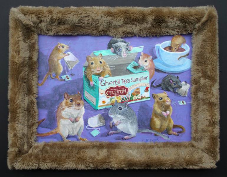 Another of my visual puns fro the RODENT series, Americana and animals combining in wordplay. This one spoofing the NorthWest's fascination with organic and herbals. It's framed in fake fur to match the little gerbils.
