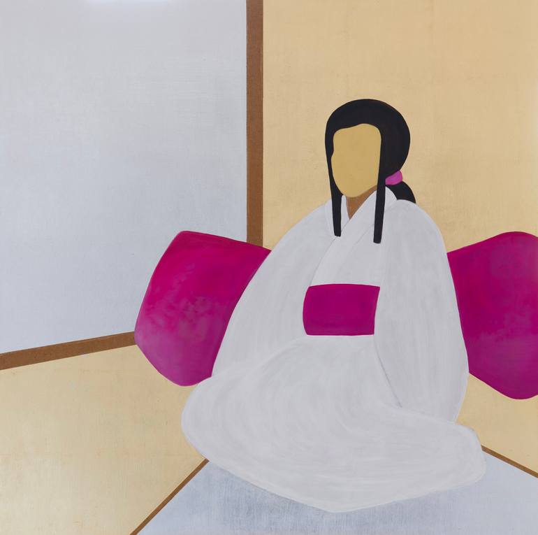 Reflection on the situation of invisible women. When all appearances and masks are important, but not the person... After sketch and following artwork were sold, I was asked to paint it once more by Women working in Japanese Corporation - this emotion was very important to them, and I was touched ...
