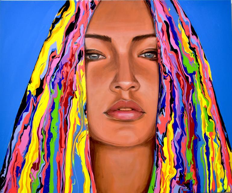 Yeliza is a painter from Berlin best known for her sculptural, colorful portraits and abstract artworks inspired by postmodern art and modern-day sophistication. Her expressive portraits unites Pop Art with masterful acrylic painting. “I paint personalities with character that radiate a special presence, freshness and inner strength,” says Yeliza. “Whether love, vanity, sex appeal – I am inspired by feminine diversity and infuse it in my color-intensive paintings.” Yeliza’s works combine unusual stylistic elements: the hair melts into bright, jazzy colors that dissolve into abstract forms, while the background is kept monochromatic in the Pop Art manner. The face has a sculptural appearance and looks as if it were carved in stone. The large-format acrylic paintings thus take on something monumental – a dramatic contrast is created within the works. Through her unusual compositions, Yeliza brings contradictions together. The artist celebrates diversity and makes a statement with her multi-faceted works. “The paintings show the most diverse body forms, age groups, backgrounds and ethnic groups,” says Yeliza. She strives to depict a woman freed from social constraints. “I believe in women and feminism. That’s why my Poster Girls can’t be pigeonholed.” It is most likely this liberating, affirmative atmosphere that draws people inexplicably to her works.