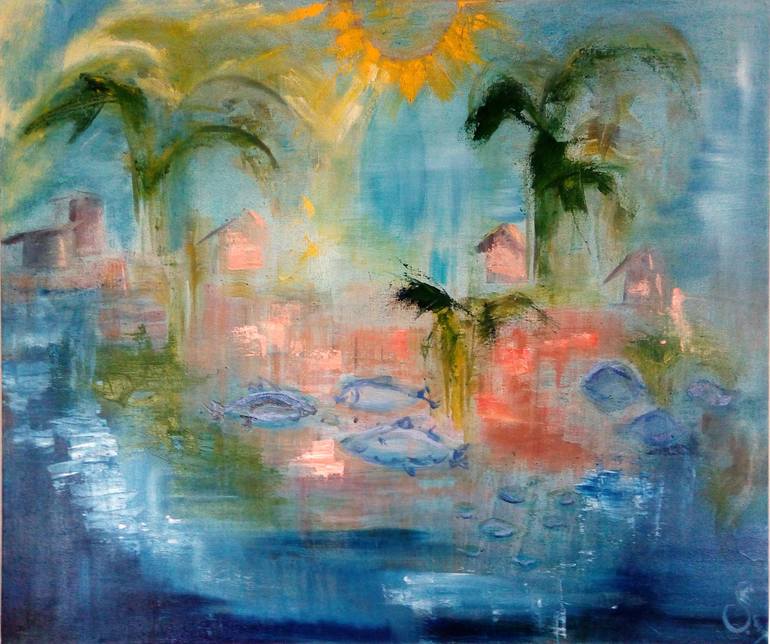 PAINTED AS AN IMPRESSION FROM SOUTH GOA FISH MARKET. OIL ON COTTON CANVAS.