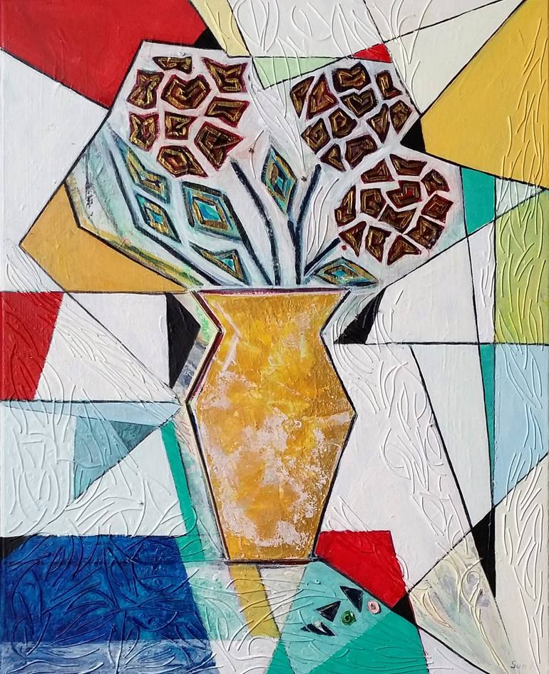 A whimsical mixed media artist who embraces the world, different culture, nature and people. studied Industrial crafts and graphic design influenced in her art and inspired by impressionism and cubism. She sees an object with dots, lines and shapes. Her colors show passion and energy. Her lines represent interest, excitement, adventure and diversity. currently living in peaceful island, creating art with painting and improvising music.