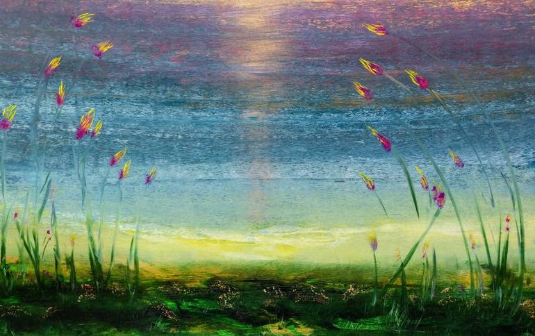 "GOODNIGHT SWEET LIGHT" whispers of nature's profound wisdom, capturing the essence of wildflowers basking in the final, glorious light of day. This original, large acrylic on canvas artwork invites you to lean into that last ray, embracing the tranquility of twilight until the dawn. Crafted with l...