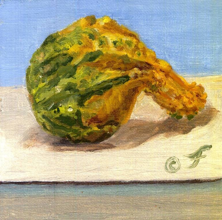 I asked my partner Karen A Smith to choose some nice gourds to paint at the local flower shop in FairlessHills, pa. They make me happy when painting them. We need happiness in 2020! Title: GOURD 7, Medium: Oil on Canvas Panel, Size 6 x 6".