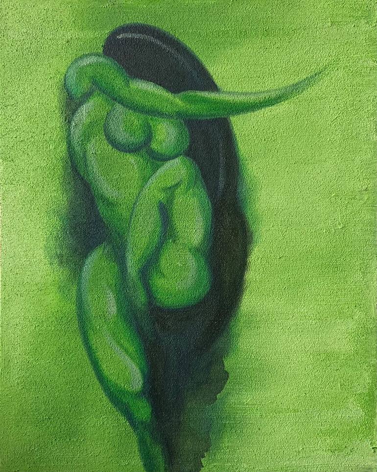Green girl nude in summer I like nude female bodies. especially in hot summer. I like gardens and so I painted this leaf-colored nude.