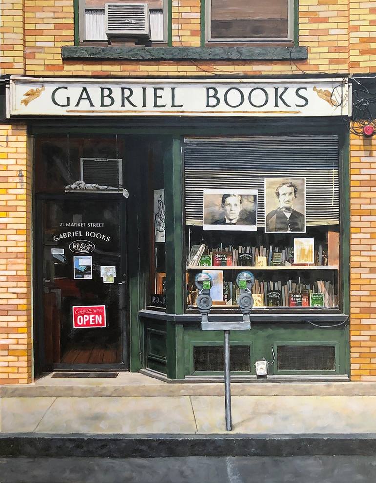 Gabriel Books Located on Market Street in Northampton, Massachusetts Acrylic on Illustration Board - 15.5" x 20"