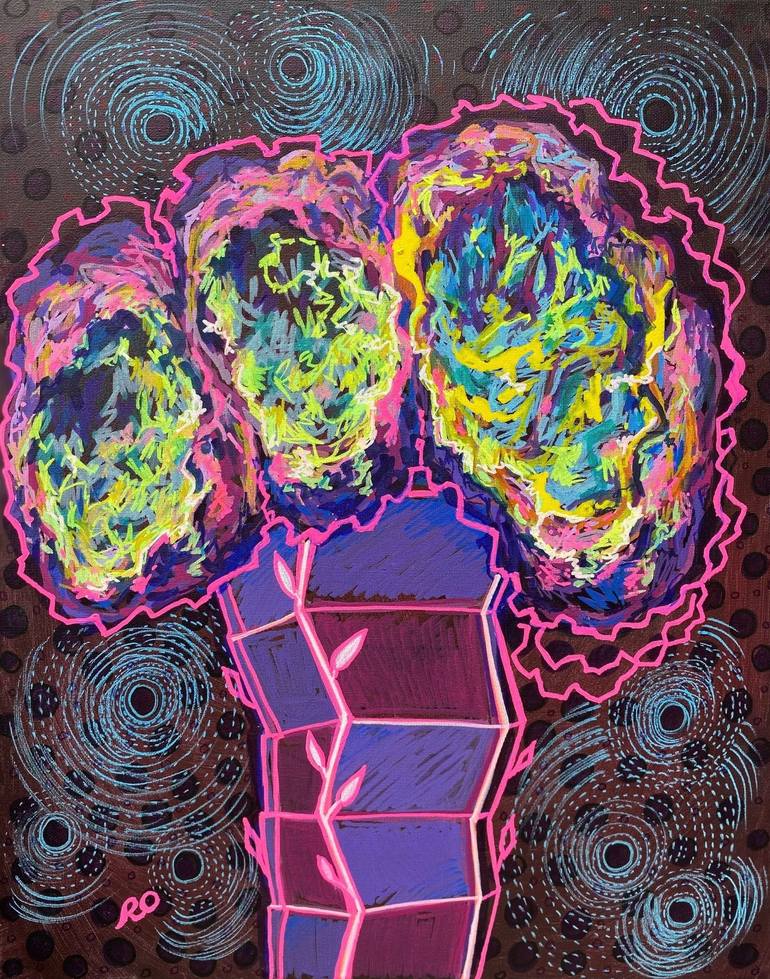 Original painting “Galaxy vase” Size: Height 20 x Width 16, Depth 0.6, Inches. Materials:Acrylic on canvas. Subject: Vase and Flowers. Style: Impressionism, Contemporary, Modern, Decorative.
