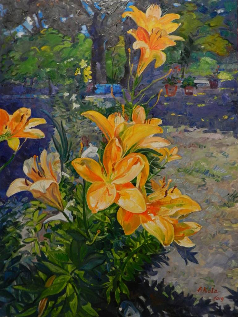 oil on canvas 80cm x 60cm garden, landscape, expressionism , impessionism.