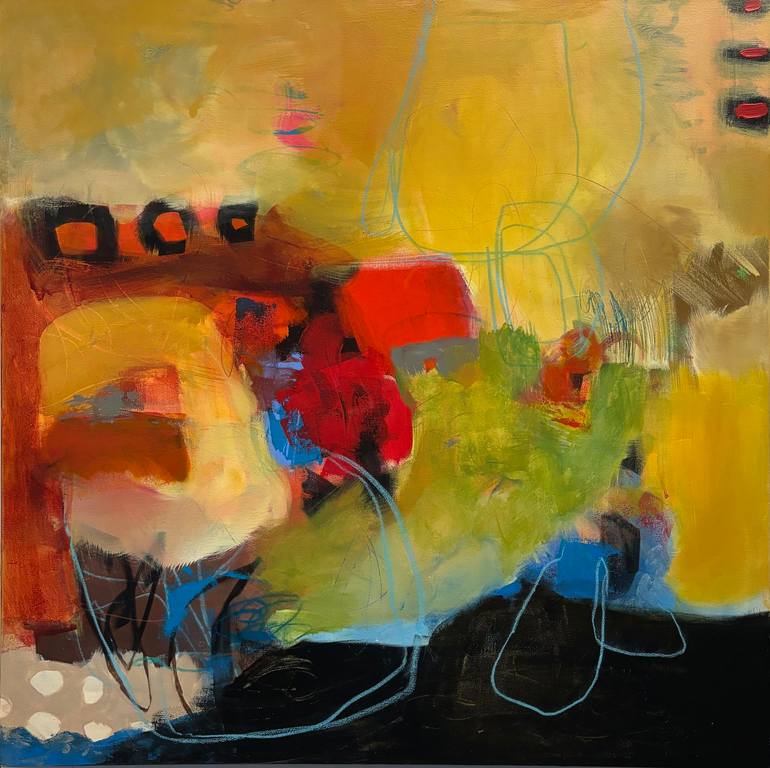 I paint intuitively, letting layers of paint, fabric, collage and paper interact and unfold into a story. When I discover the story within the painting, its meaning comes into focus. When the meaning has been revealed, my painting is complete.